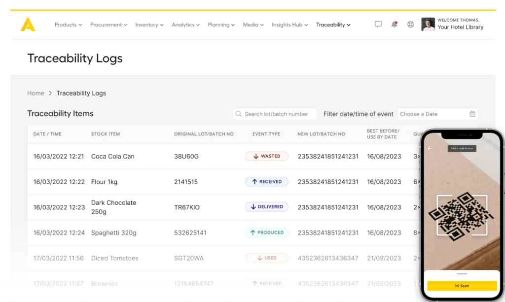Das Rückverfolgbarkeitssystem ist ein geschlossener Kreislauf dank der Option zur Registrierung von Lebensmittelabfällen. Das bedeutet, dass jede Zutat und jedes Produkt berücksichtigt wird, ganz gleich, was passiert.