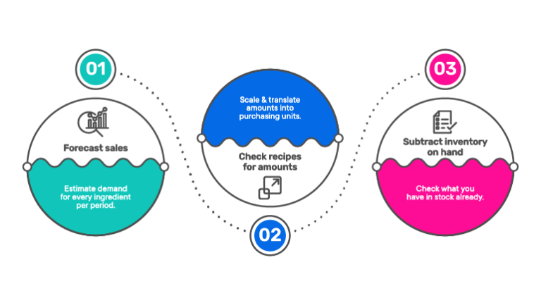 - Trek de beschikbare voorraad af – als je de methode voor permanente voorraad gebruikt, controleer dan de cijfers van de vorige avond. Als je software gebruikt, zijn je inkoopformulieren al gegenereerd (joepie). En als je geen van beide doet… wel, dan moet je tellen.
