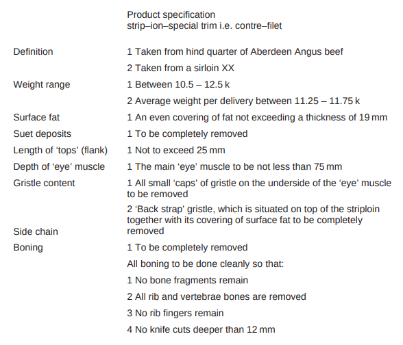 (Als je specificaties niet zo gedetailleerd zijn, is dat meestal niet erg. De meeste artikelen zijn gestandaardiseerd – als je bijvoorbeeld ‘prime-cut rundsvlees’ zegt, weten de meeste leveranciers dat het gaat om het beste stuk vlees, uitgebeend, ontdaan van vetresten en kraakbeen).
