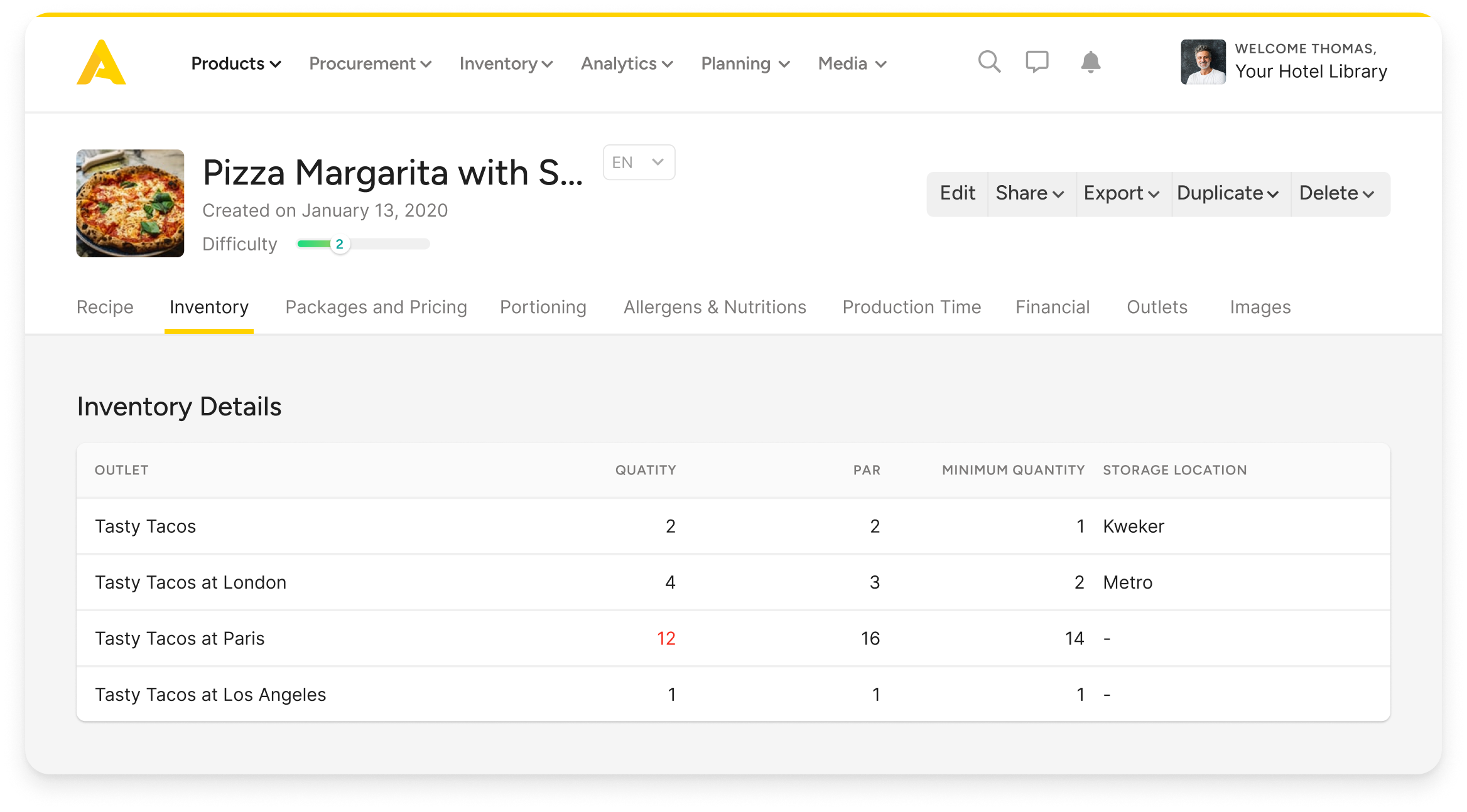 You can design menus in a central recipe library and ensure each team gets exactly the information they need.