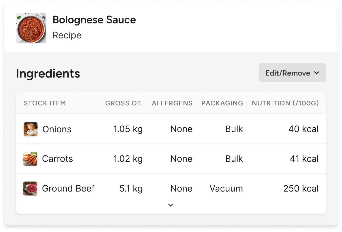 Creating new dishes is easy with our drag-and-drop recipe builder. Development chefs can select ingredients directly from their lists, set portion sizes, and let the software handle the rest.