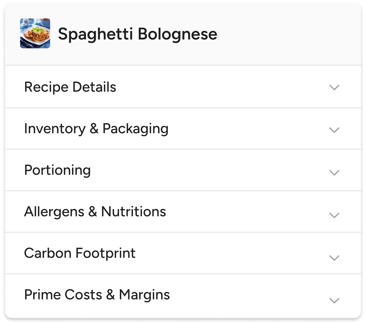 A cloud-based recipe builder designed for large restaurants and catering operations, featuring food cost calculations, ingredient and allergen tracking, nutritional analysis, carbon footprint monitoring, and preparation guidelines.